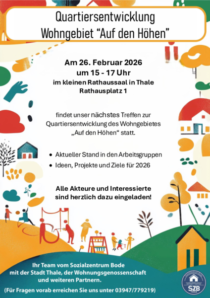 Am 26.02.2026 ab 15 Uhr findet das nächste Treffen zur Quartiersentwicklung im Sozialzentrum Bode statt.