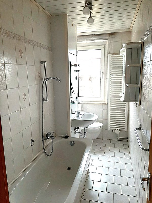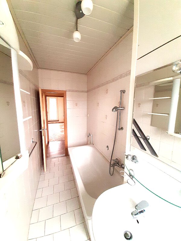 - das Bad mit Wanne ist bereits komplett gefliest;