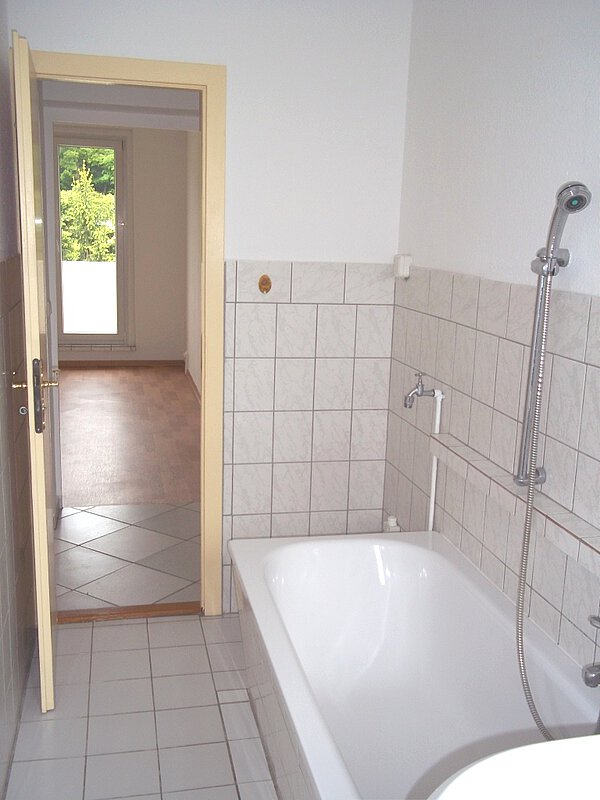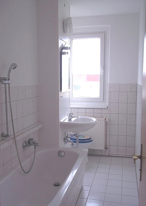 - das Bad mit Wanne ist komplett gefliest;